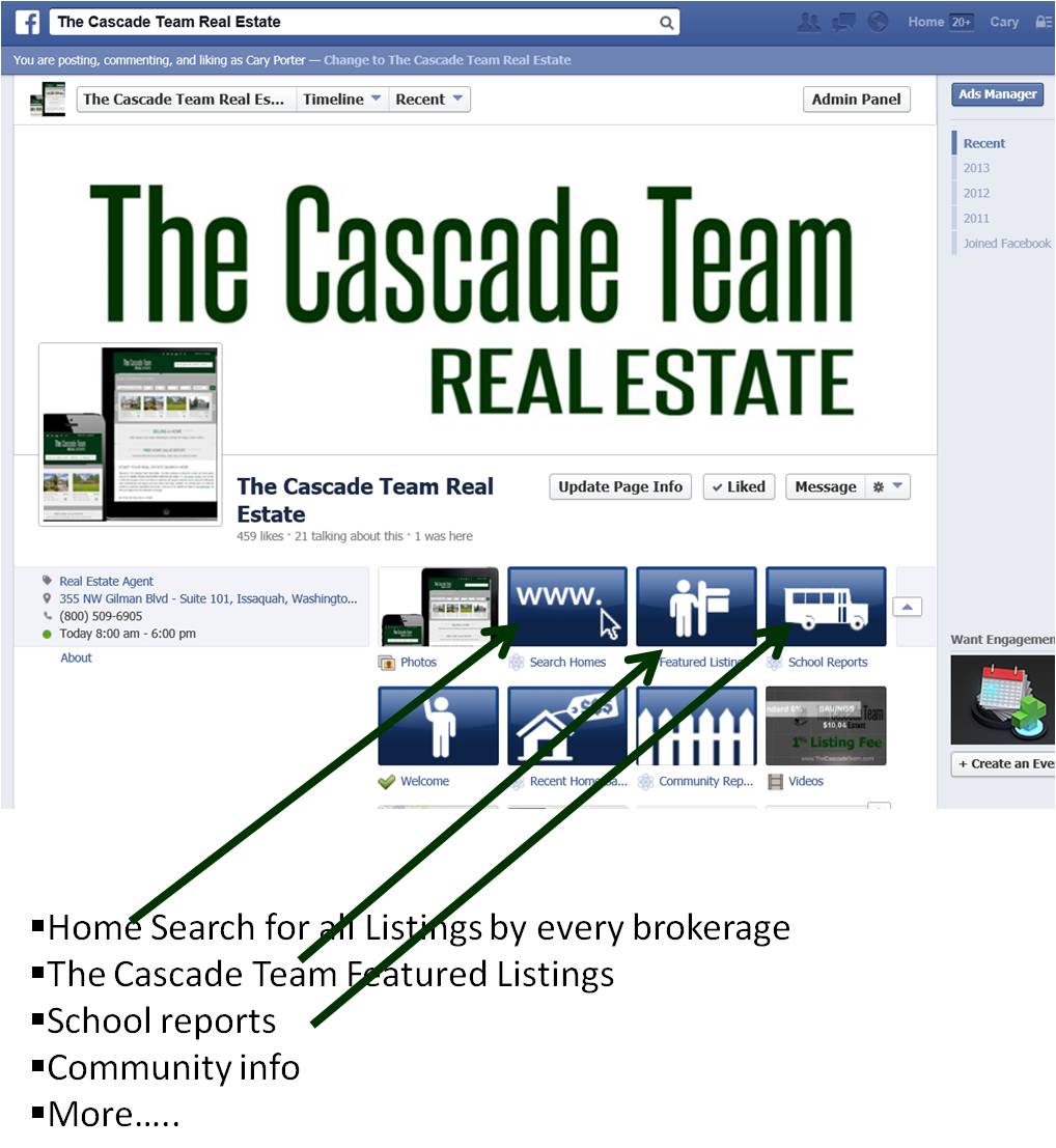 As social media continues to be a driving force for communication and for people sharing likes and ideas, The Cascade Team strives to be on the cutting edge. Our newly updated Facebook page for The Cascade Team now enables visitors and friends to directly search the entire MLS without leaving Facebook! With one click they can also see our company featured listings, community reports, school reports and more.