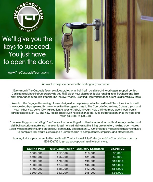 Not only will we save YOU thousands, we will make YOU thousands! Plus, with The Cascade Team you never walk into any transaction alone. You always have a Team behind you!