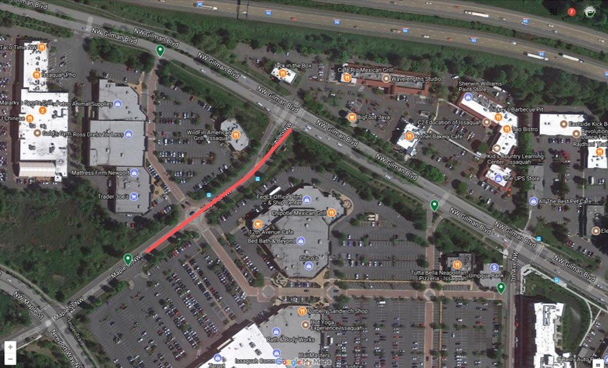 While a short term inconvenience this project should greatly ease the congestion in one of the busiest shopping areas of Issaquah in time for the holiday shopping season and beyond.