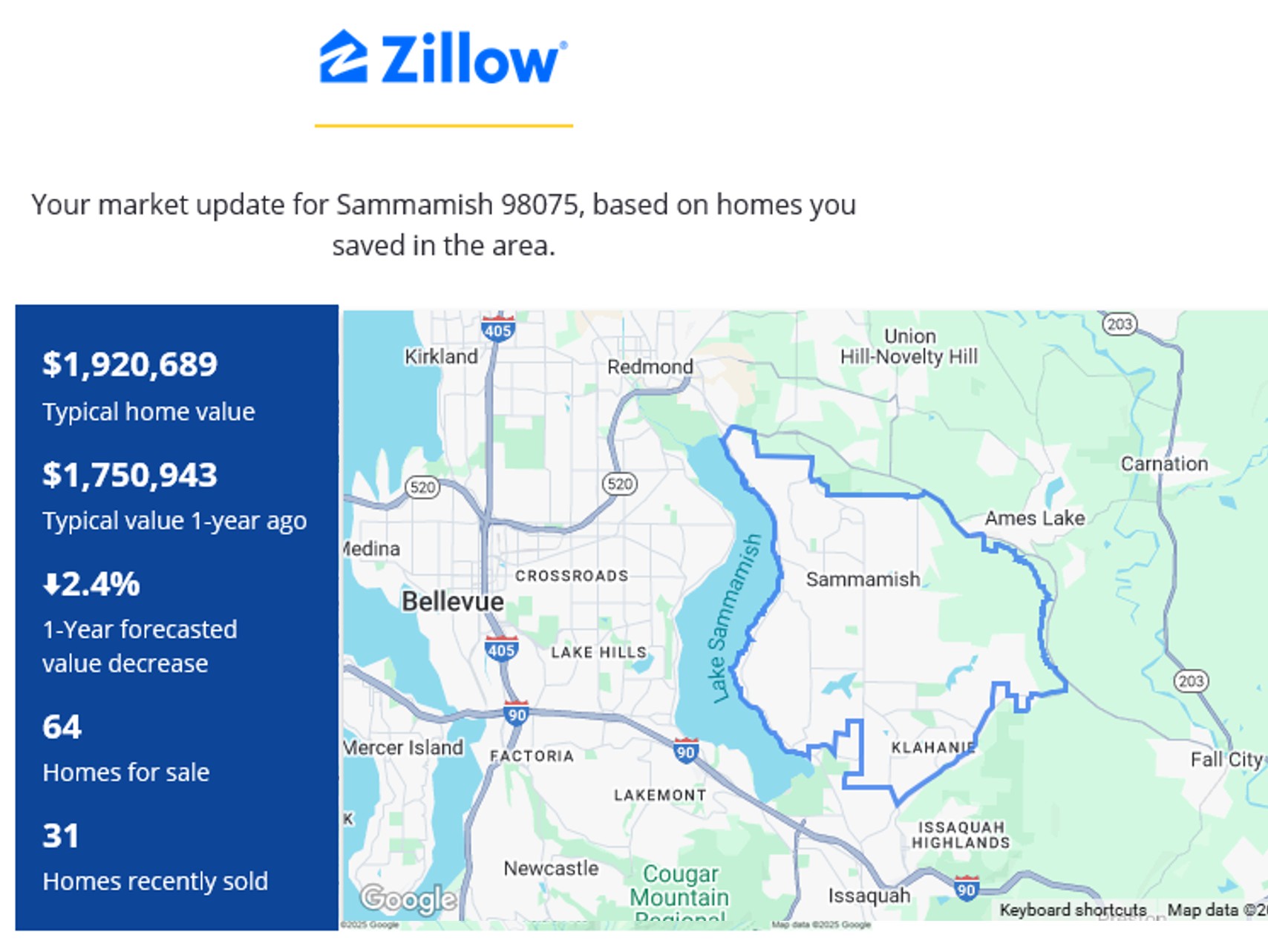 Even some of the hottest markets like Sammamish are now projected to have a 2.4% decline in prices over the next 12 months according to Zillow.