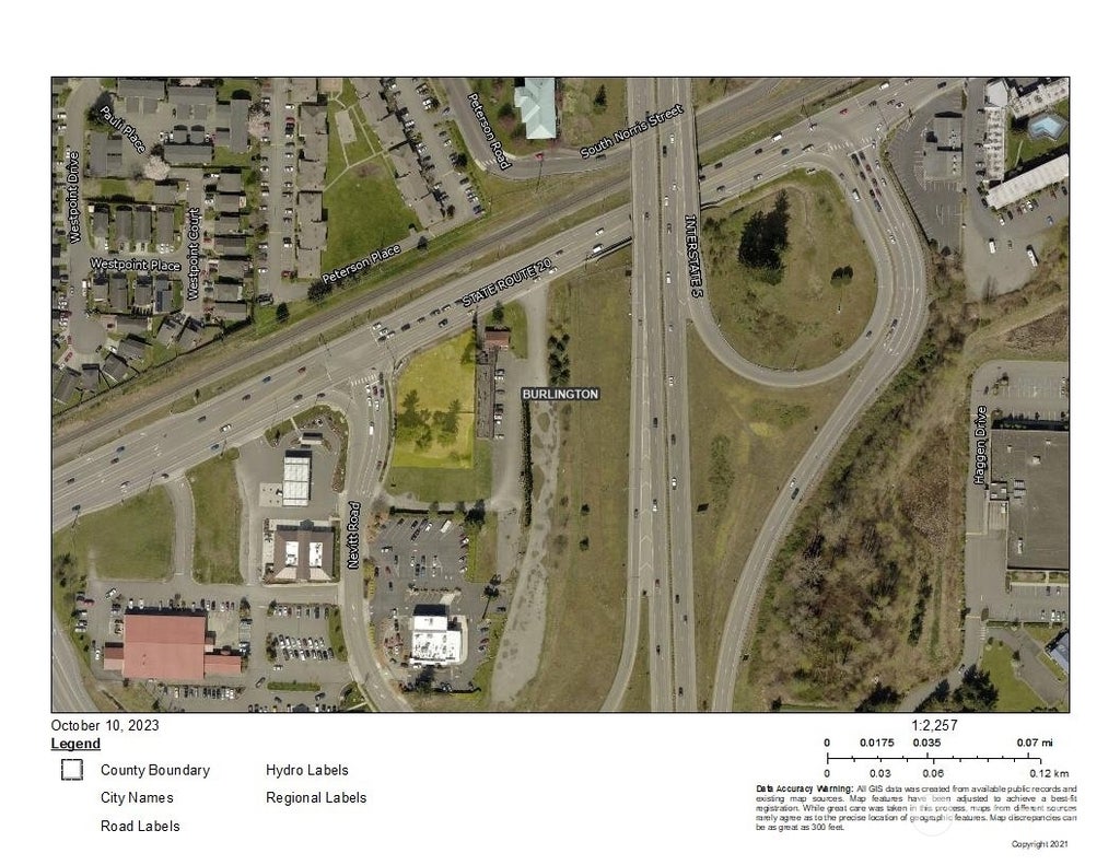 Fantastic Location!!! 176 Linear ft. HW 20 frontage. Great access to I-5 North and South on ramps as well as HW 20 East and West through stop light to Nevitt Rd. This location is zone Commercial and is perfect for a hotel, gas station, restaurant etc. 58 Room Hotel Plans have been drawn up and are negotiable. This lot, P23672, is .81 acres, and is being sold/leased with lot P23664 which is 1.55 acres.