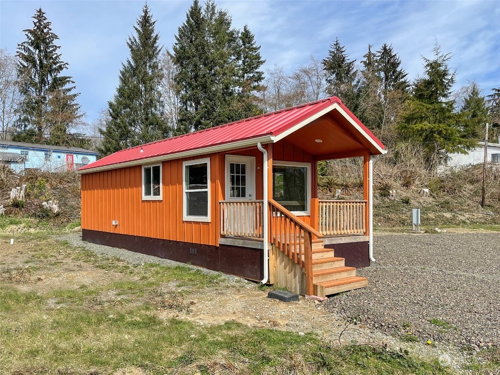 Brand new park model in Sekiu! Located in the Anglers Hideaway just above town, you are minutes from the boat launch. There's plenty of room to park your boat to avoid paying moorage fees. It boasts a metal roof, Hardie siding, covered deck, a full sized fridge and a washer & dryer. At last, an affordable home in Sekiu! Don't miss out on this one.