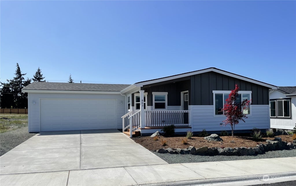 Lighthouse-Stunning home in Sequim's newest 55+ community. Spacious & functional layout w/ 2 BR + Den. Walk in closet in primary, ensuite has its own closet and built in storage. High end quartz island, solid surface countertops compliment the clean white trim & modern kitchen cabinets in addition to a pantry. Drop pendant lighting, SS appliances, tile backsplash, surplus of natural lighting plus a 2-car attached garage, beautifully landscaped in front and turf for pets already installed in back yard with partial fence. Private and pet friendly community, miles of interior sidewalks, pickle ball courts, horseshoe pit, bocce ball area, pocket parks, multiple dog parks and a club house all for residents. Heat pump Compatible.
