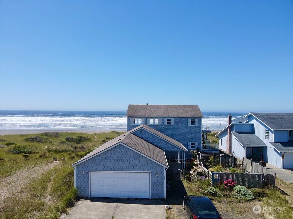 Cape Cod style Ocean Front home located in Westport. Breathtaking views of the Ocean from every room. Home is approx 2010 SQ FT w/ 3 bedrms & office on lower floor. Primary bedrm has a primary 3/4 bath & double closet. 2 additional bedrms & a full bath. Office w/shelves & view of ocean. Great rm is on 2nd floor w/kitchen, living rm & powder rm. Kitchen has meal prep island, lots of cabinets & large pantry. Free standing wood stove in Living rm. Very High ceilings throughout home. Deck off Great room w/stairs down to the outside. 3rd bedrm on lower floor was used as an art studio, has water & washer/dryer hook up. 2 car garage w/ storage shelves. Flower Garden area . Come & enjoy the Sunsets, Play on the beach, fly a kite or just relax !
