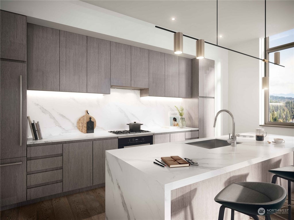 Located in Downtown Bellevue, Mari is a boutique luxury condominium building offering a variety of floorplans ranging from studios to four bedroom penthouses. Finishes include custom kitchen cabinetry with wood-paneled appliances, quartz countertops, 9-12 foot ceilings, wood floors throughout and Latch keyless entry. Amenities include a concierge, fitness center, yoga studio, dog run/wash and the top-floor SkyClub with indoor access to dining and outdoor gathering spaces. Occupancy expected Spring 2024. Selling broker must register buyer with the listing broker on the first visit to MARI.