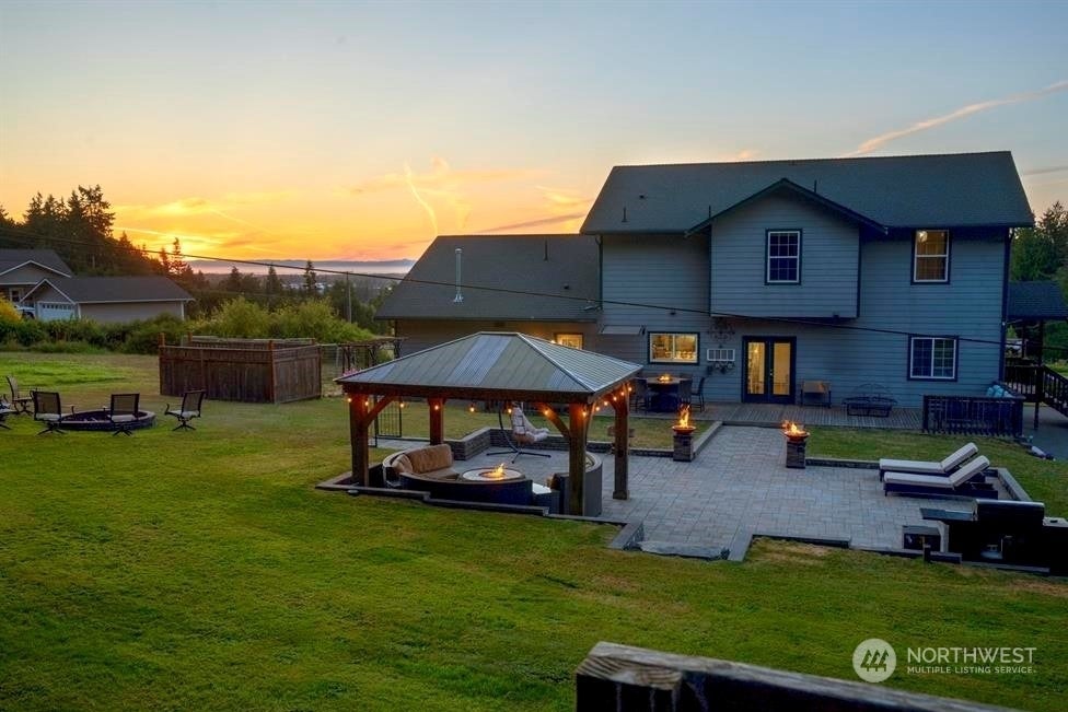 View this rare & unique 2 story home w/gorgeous water views & beautiful sunsets. This spacious 4 bed plus Office/Den, 3 bath home sits on over 1 acre with a back yard to die for, featuring a hot tub, above ground heated 7' pool, skate board ramp, basketball court, 2 playhouses, a zip line, lighted Gazebo w/power & phone charger ports, dog run, & fire pit. It's simply a dream backyard with great outdoor space just perfect for entertaining. The home has been well maintained,& features a spacious kitchen w/new farm sink, & breakfast bar, nice size bedrooms, oak hardwood floors, tile in bathrooms, kitchen & laundry room, a beautiful stair case, free standing propane stove in family room, tons of storage, including 2 outbuildings, & RV parking.
