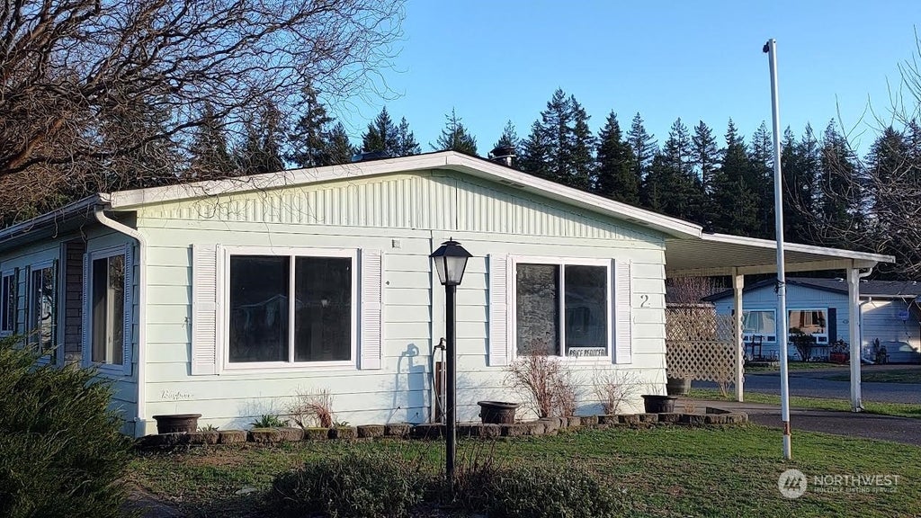PRICED TO SELL!! This MOVE-IN READY home WITH A BRAND NEW ROOF on a large corner lot in this great 55+community park has recently been updated and has 2 bedrooms and 2 bathrooms. It's nicely situated...you'll love the outdoor patio and spacious yard. There's also a shed for storage and a carport to keep you nice and dry when bringing your groceries home. Close to shopping, hospital, parks, trails, downtown and easy access to HWY 101 and only a 30 minute drive to Olympia. Here is your chance to own a home in desirable Christmas Village in Shelton WA. Come check it out!
