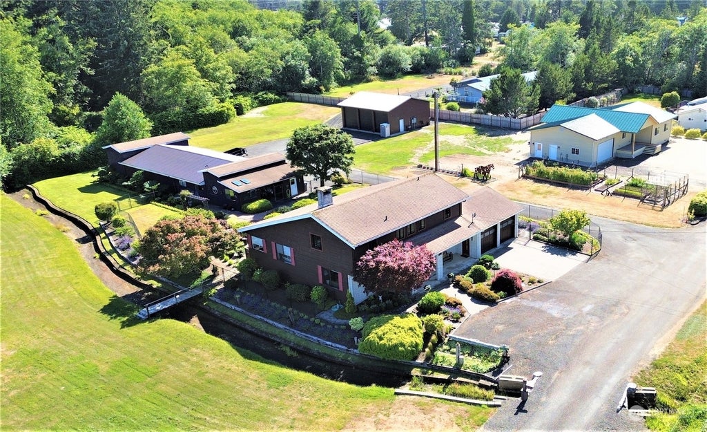 This "Custom Built" Westport home really has all the features you will need for full time living in a sea side town. The 2,490 sq-ft three bedroom home sits in a park-like garden on a 0.6 acre lot and includes many awesome features. The out buildings include a boat house, a large toy storage garage, an office, a wood working shop, a garden equipment/tool/storage shop and a potting shed. House features include an open living room with super high vaulted ceilings, a family room, main bedroom suite + 2 bedrooms, dining room, 2.5 baths, propane free standing fireplace, 2 car garage, covered front porch, grand entrance hallway and an outdoor patio for summer gatherings in the magnificent garden. You really need to see this property!
