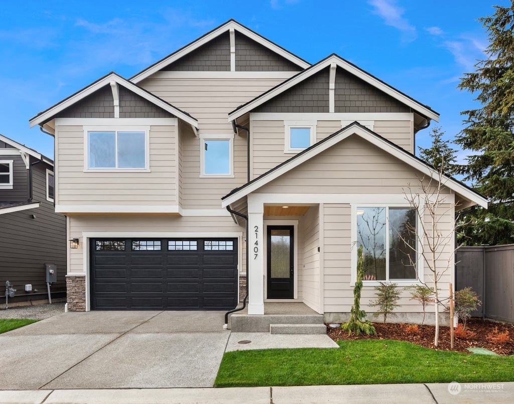 New Construction - MOVE IN READY. Elegance abounds in these brand new thoughtfully designed homes built by award winning JK Monarch. Rosemary's Glade Lot 1 is a contemporary 2-story, 5 bedroom home with 2.75 baths and designer touches throughout. The 1st floor offers a main floor office/guest suite with ¾ bath, a light-filled great room including kitchen with island seating, dining area and cozy family room with feature gas fireplace. Upstairs includes a leisure loft, the spacious primary en-suite, 3 more bedrooms, a full bathroom and laundry room. Relax in your grassy backyard under the covered outdoor living space and enjoy the convenience of a 2 car garage. This intimate neighborhood with open space is just minutes local amenities.