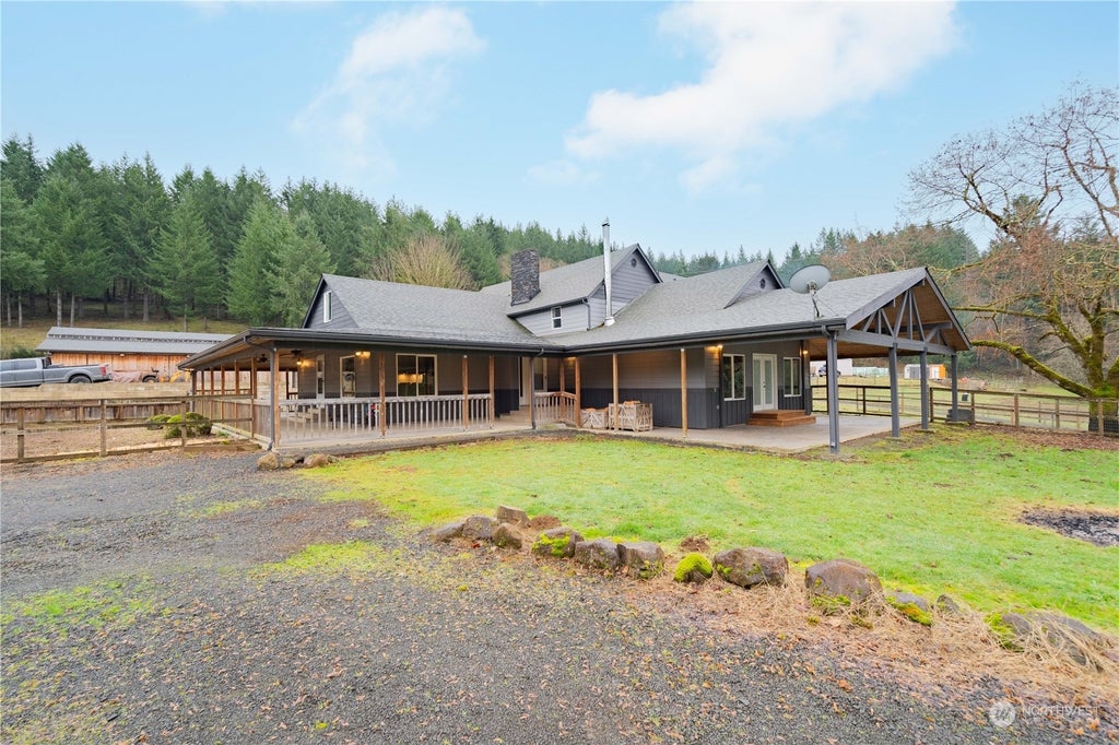 Private equestrian estate spans 5 beautiful acres. The property features a 3 stall barn equipped with a wash room, rack room and more. Designed with farm-to-table living in mind, the estate includes practical amenities like a meat cooler for processing and storing farm produce. A conveniently located mudroom near the detached two-car garage and versatile outbuildings offer ample storage and space for additional livestock care or equipment. The updated home boasts 4 bedrooms and 3 full bathrooms, with a flexible bonus room on the main level for additional bedroom/office. Three fireplaces and bonus/party room. Warm wood finishes throughout. The property is move in ready for all!