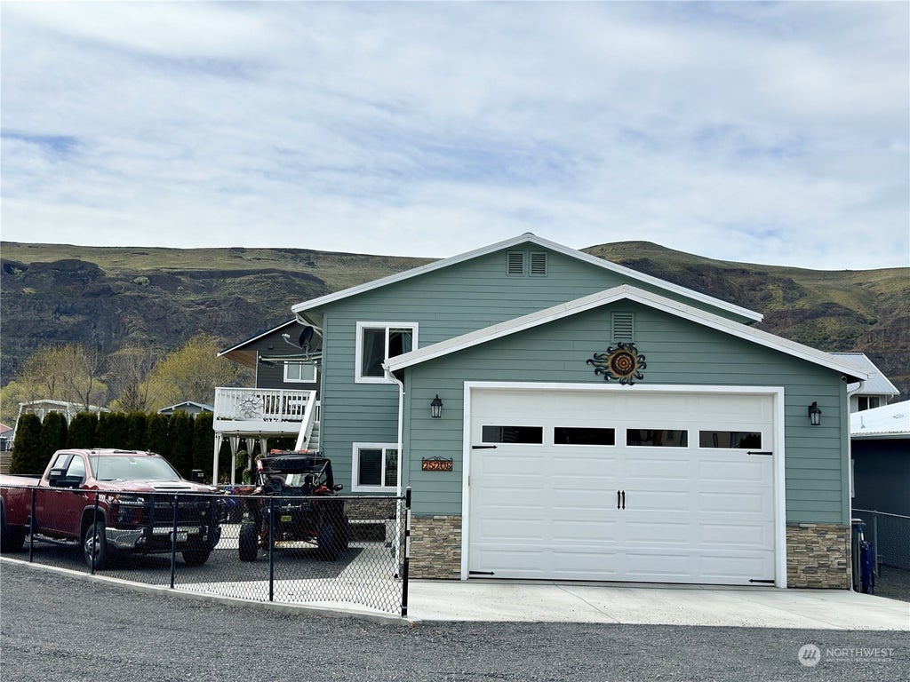 Coveted Cove View home on Wanapum St in Sunland boasting of beautiful views of the Basalt Mt's and the Columbia River. Custom kitchen w/updated appliances and new flooring throughout located on the main floor, as well as a bonus room w/ a plumbed in bar and laundry room. Upper floor consists of 3 bedrooms, the spacious main bedroom has a newly remodeled ensuite bathroom w/custom tile, jetted tub/walk in shower along w/two additional guest bedrooms. New garage addition in 2017, 24x24 deep w/ 3 parking spaces. Fully fenced, landscaped lot w/covered patio, RV parking, shed and garden area. The boat launch, park, pool and store are close by. World renowned Gorge Ampitheater is within 5 miles and Seattle a short 2- hour drive.