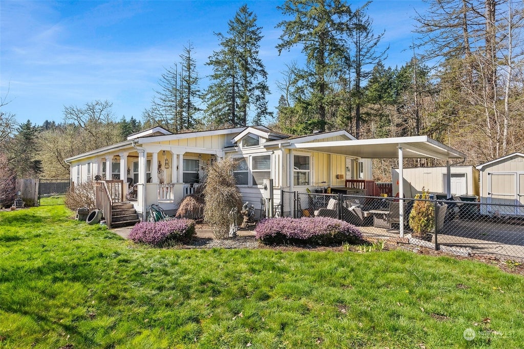 Lovely triple wide home at Hunter's Walk community. Tucked in the corner on the largest lot in the park, this home has space to spread out indoors and out! Home has a carport, large parking pad, three storage sheds, and a fully fenced yard outdoors, and large living space, dining room, two full baths, and large primary bedroom on the inside. Kitchen has new Jenn-Air stove top and new double oven. Lot backs up against forested land, offering a touch of nature. Being sold LESS THAN appraised value!