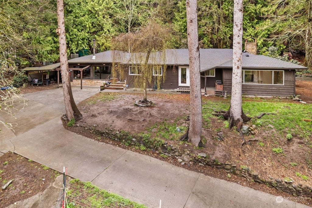 Embrace tranquility & a private oasis with this charming mid-century 2,068 SF rambler nestled on nearly 15 acres. Featuring 3 bdrms & 2 baths, & huge separate family rm complete with a wet bar and a cozy free-standing wood stove. Spacious living rm has picture windows looking out on the property and efficient pellet fireplace insert, tastefully remodeled kitchen with eating bar. Ample storage space and built-in shelving throughout the house. Two carports and large covered back patio and firepit for entertaining! This sturdy home was constructed in 1957 on a 1.45-acre plot. The remaining 13+ acres of wooded land has conservation easement (see attached). Relish in the untouched natural surroundings for ultimate privacy and serenity. Private!