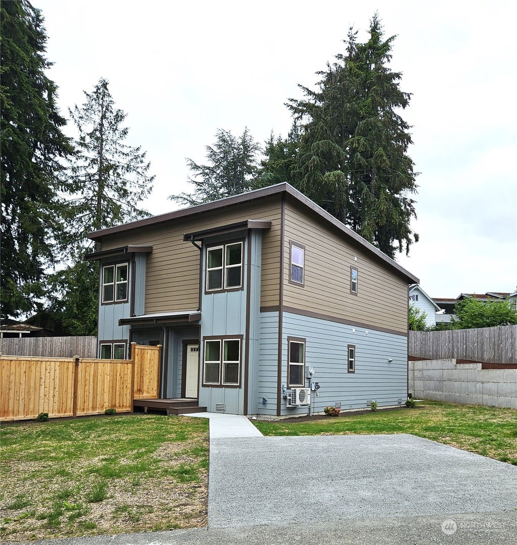 Welcome to Kashmir. This gorgeous 2 story gem, completed in 2024, boasts 2 bedrooms, 1.5 bath providing ample space in a delightful eat in kitchen w/ 1152 sq ft of living space, that’s perfect for entertaining. The heart of the house, the kitchen, is a chef's dream, featuring all new appliances & elegant laminate floors that open to its great room. The lot size 4356 Sq Ft. heated by electric wall heaters supplemented by the ductless mini split system. Close to Shopping, Shipyard, hospital, & the ferry. Vibrant community of homes, where fun & neighborly camaraderie await. Make this E. Bremerton beauty your forever home. step into the lifestyle of your dreams. lawn hydro seeded. PVC roof. 2-10 yr structural warranty. No monthly/annual HOA fee