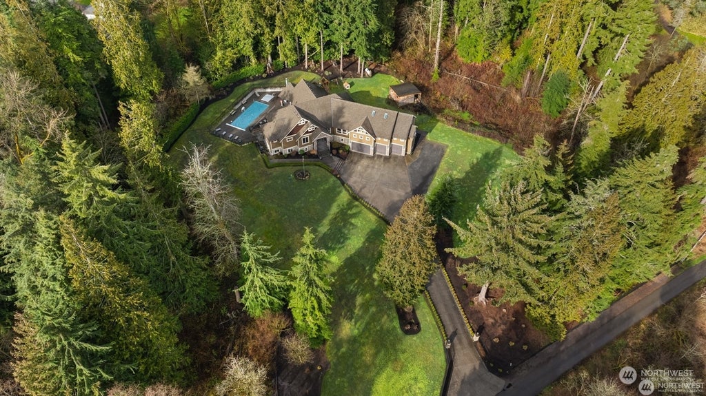 Indulge yourself with Luxury living in this stunning custom home on a legacy 4 acre estate. The home boasts luxurious finishes, 4 bedrooms, primary floor living. An entertainers dream with designer kitchen, granite slab island, Wolf range w/3 ovens, Subzero refrigerator. Spacious open concept that flows seamlessly to an outdoor oasis for elegant poolside entertaining & twilight evenings in the spa. Cozy covered deck w/fireplace that can be enjoyed year round. Private 1000 ft ADU-1 bed, 1bath & full kitchen for multi-generational living adds to this designer home. A legacy to call home for generations to come. Room for your toys-RV's/boats. No detail was missed-wide plank hardwood floors, A/C, generator, easy commute to the Eastside.