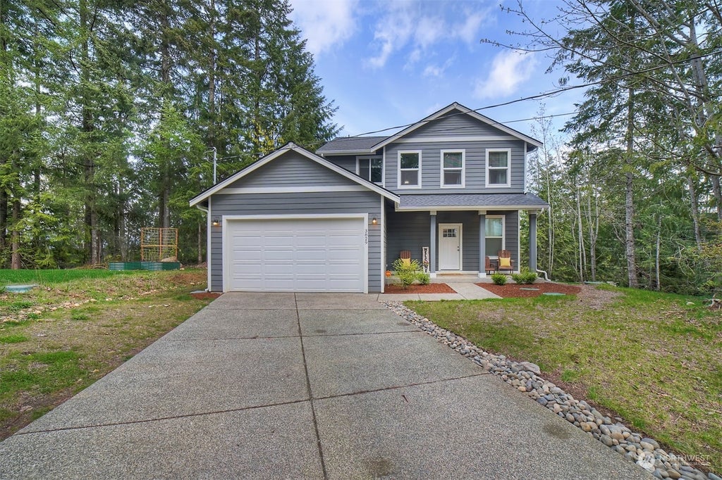 Take a peek at this 3 bed, 2.25 bath home near Wildcat Lake. Nestled close to lakes, hiking trails, and centrally located between two military bases within Central Kitsap School District. Built in 2021, this home features luxury vinyl plank flooring, quartz countertops throughout, shaker cabinets and island in kitchen, and a soothing paint palette. Upstairs find a primary bed/bath ensuite, two additional beds, a guest bathroom, and loft for flex space. Stainless steel appliances and washer/dryer all convey. Two car garage has additional storage space. Come check out this beautiful home!