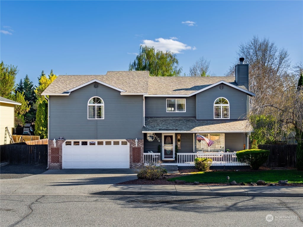 Discover your own slice of paradise with this 4 bedroom home nestled on a .44 acre lot. Two levels of living with all bedrooms grouped together on the upper level including two primary suites-ideal for multi-generational arrangements. The cozy great room features a wood burning fireplace and Acacia hardwood flooring throughout the main level. Fresh exterior paint and an updated HVAC system are just a few pluses! The kitchen features newer stainless appliances and picture perfect views of the backyard. The spacious bonus room makes a great theater room! Enjoy the convenience of irrigation water, RV parking and a generously sized patio and deck area. Soothing sounds from the pond/waterfall feature, a serene cul-de-sac setting & no covenants!