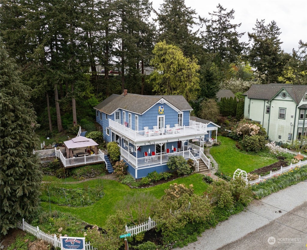 Great home in the historic district of LaConner. Originally constructed in approximately 1882 and restored at different times. Five Bedrooms and Five Baths with 2,765 square feet of living space. Currently in use as a Bed and Breakfast, Katy's Inn, this property can be sold as a single family residence or continue as a B & B. Listing as a B & B is in the commercial category of the MLS. As a single family residence there is the opportunity to construct a garage with an ADU. Also, plenty of off street parking for boat or RV. Walking distance to downtown LaConner shops, restaurants and shops.