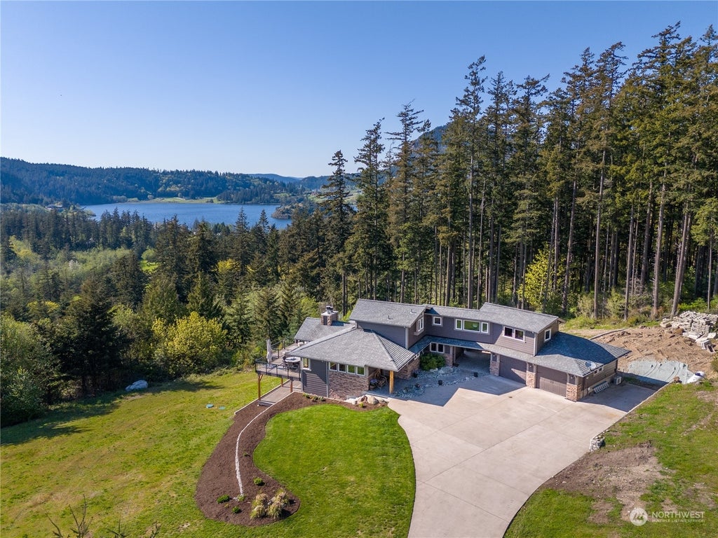 **Discover a breathtaking retreat nestled on just over 1.6 acres, boasting panoramic territorial & water vistas. Step inside to be greeted by the allure of bamboo flooring, accentuated by the warmth of wood columns and beams. Cozy up beside by the wood-burning fireplace, ensuring warmth & comfort. The gourmet kitchen, an epicurean's delight, commands attention with its seamless flow into the inviting living room. Outside, an expansive deck beckons, complete with an outdoor fireplace, inviting hot tub, & ample seating, offering a serene oasis for relaxation & enjoyment. RV or boat parking on the side of the garage caters to your adventurous spirit. Welcome to your own slice of paradise.