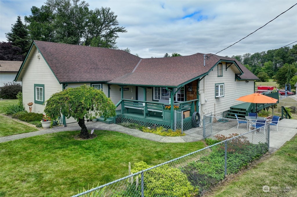 This charming farmhouse,just shy of an acre,offers a unique blend of vintage character & modern comfort. The renovated kitchen features new cabinets,butcher block countertops & stainless-steel appliances,while hardwood floors add warmth & elegance throughout. The lower level provides a flexible recreation room or office space, 3/4 bath & additional finished room, ideal for a 4th bedroom. The utility/mud room leads to the patio & expansive deck,where you can relax by the pool or in the hot tub. Outdoor & hobby enthusiasts will appreciate the 1,080 sqft shop w/ metal roof & reinforced flooring-perfect for projects or storage, RV carport, outbuildings, covered woodshed & greenhouse. Conveniently located near freeways,restaurants, shops & more!