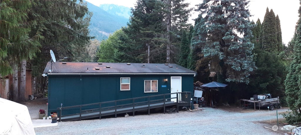 MAGNIFICENT MT SAUK VIEW .36 acres on Skagit river. 90 MIN COMMUTE to Everett or work remotely. STEPPED TERRACES: fish from river; large, parklike play area or garden. ABOVE FLOOD level: house; 16x16 BBQ DECK; pumphouse. DETACHED WORKSHOP/BUNGALOW. Used as third bedroom, craft shop. Lots of UPGRADES where it counts: ADA Accessible; sweet water well with insulated lines; 80g compression tank; updated septic system. REMODELED OPEN FLOOR PLAN for allergy free cleaning, pets and wheelchair: limestone core vinyl flooring; LARGE KITCHEN with pantry. HOME OFFICE. Video studio or craft area. Wood stove. GORGEOUS VIEW at Master bed and bath: low rise shower. PARKING- 7 VEHICLES. 300 gallon rainwater tank; covered boat storage; generator pad.