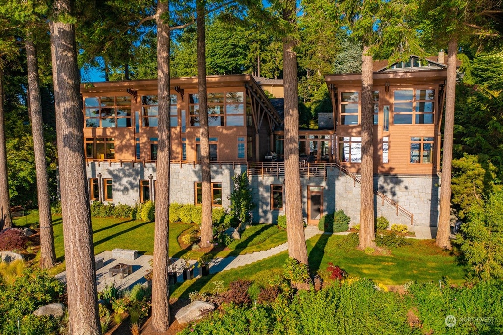 Waterfront at its finest! Designed by renowned architect Nils Finne and constructed by Emerald Builders, this AIA award-winning home rests atop the bluff at Boundary Ridge. Finne--dedicated to Crafted Modernism with a clear understanding of the importance of weaving the landscape and the light with the structure has created a waterfront home which is truly a piece of art. Capturing the sunlight from every angle, the inverted roof, fir beam fan trusses, stone plinth, clerestory windows, and innumerable design features command the beauty of the view. A one of a kind masterpiece--crafted like no others. Sought after waterfront location offers the finest of island views, truly breathtaking sunsets, Zen serenity and city lights.