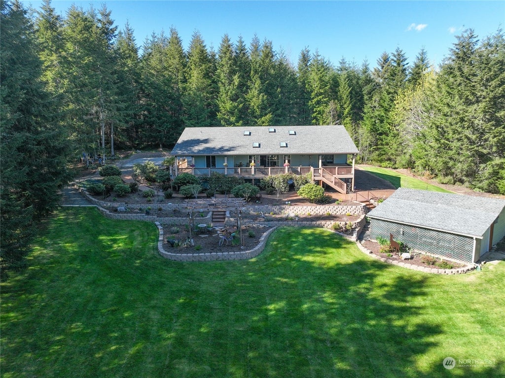 Spectacular single level custom built home nestled in a magical park-like setting in a gated community! Home boasts 3 bdrm, 2 bthrm, Great Rm w/Acacia wood floor-vaulted ceiling-skylights-built-in cabinetry-propane FP-8' slider to covered wrap Trex deck, Gourmet kitchen w/slab granite-custom cabinetry-cooking island/eating bar, dining rm w/slider to stunning stamped concrete patio-stacked wall w/lights-cedar trellis, lg primary bdrm w/Fr doors-walk-in closet-ensuite w/dbl sinks-walk-in tile shower-heated travertine tile floor-Fr door to deck/hot tub, lg laundry rm/pantry, 2 car garage, ample parking & generator. Manicured low maintenance grounds-6.4 acres-gazebo-20x24 shop/shed all connected by stamped concrete path. The hard work is done!