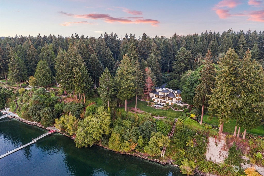 Luxury Property Auction Bidding Open: Bidding ends 10/29. Previously Listed $8,000,000. Current High Bid $5,000,000. This BI estate offers majestic water & Olympic Mtn views on 2 tax parcels. This West - facing Manzanita Bay frontage sets the stage for spectacular sunsets. Renovated in 2021. Entertain across this estate’s main level-walls of windows & an open floor plan flood the interior w/light. A large outdoor deck invites alfresco dining, evening cocktails. Enjoy gorgeous views from the manicured grounds & multiple outdoor patios. Access to a private beach w/boat mooring buoy offers another layer of outdoor living. Cook in a dream chef’s kitchen w/ luxury appliances, double ovens w/ access to 3 temp controlled 500+ bottle wine cellars!