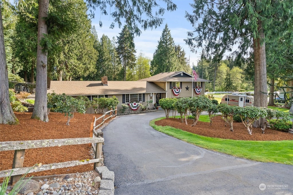 Stunning 3BD , 2BA home sits on a 4.76+/- ac lot in the heart of Tumwater. This rare gem boasts a versatile suite on lower level, perfect for guests or generating rental income, has its own kitchen, full bath, living room & bedroom. The main kitchen exudes elegance with quartz countertops, SS appliances, & stylish cabinets. The open concept provides a seamless flow from kitchen to living rm & the primary suite is amazing. Outside, the entire property is surrounded w/meticulously manicured landscaping, highlighted by majestic 50-yr-old rhododendrons & mature trees that give feels of a day at the Masters. An above-ground pool, surrounded by a deck, water features, & seating areas invites relaxation & entertainment.