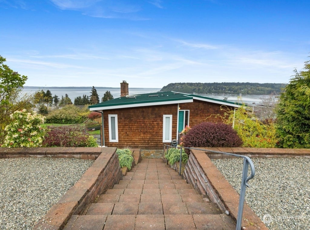 Open concept boasts expansive views of Puget Sound, Cultus Bay, & Olympics from living, kitchen & dining rooms. Huge walls of windows, skylights & vaulted ceilings offer an abundance of natural light in this beautifully cared for home. Deck fully spans N & W sides & provides amazing space for entertaining, relaxing & enjoying sunsets. Generously sized primary features tons of closet space, en-suite with double vanity & travertine tile shower. Lower level family room offers wet bar & wine fridges. Dog door by lower fireplace allows access to fully-fenced south side of home. Back section of garage has built-in cabinets & pegboard to keep organized. Community offers boat launch & private beach access - this is one you don’t want to miss!