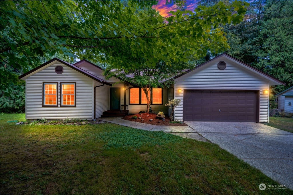 [PRICE IMPROVEMENT!] Captivating rambler on 4 acres on tranquil dead-end street, just minutes from d/t Arlington. Escape from the hustle & bustle of city life with this waterfront acreage boasting 30' on the Stilly River. This 3 bedroom, 2 bathroom home features a large kitchen w/quartz counters, custom tile backsplash, & breakfast bar, real hardwood floors, A/C, shiplap wall accents all opening to the dining & family rooms, perfect for gatherings. Primary bedroom features dual closets & ensuite. The fantastic Trex deck out back extends into the woods, creating a perfect spot for entertaining guests & Summer BBQs. Clear brush to extend usable yard out back. NGPA across street for added privacy. Room to add a shop to the left of home. Wow!