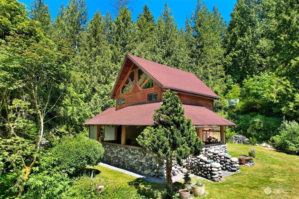 This amazing NW log beam home sits on 5.9 acres of Pacific NW beauty. Live the country life less than 20 minute drive to Bellingham, Burlington & Mt Vernon. The SW facing property has many majestic trees in a park-like setting leading to a beautiful forest with a seasonal spring running through the native landscape. This home has vaulted ceilings, wood paneled walls, & a rock chimney, fully exposed and viewable throughout. Wrapped with a picture perfect, natural rock covered front porch with vaulted log ceiling. Other features: well drained soil year round, excellent well water, HS internet, room for possible future building. Close to lake and salt water recreation Located 10 min from I-5 on a low traffic country road. Home is Sold AS IS