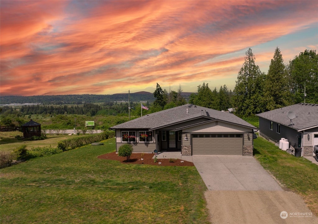 Experience tranquil living in this newer RAMBLER, nestled on a generous 1/3-ACRE lot with [breathtaking mountain & territorial views], DIRECTLY ADJACENT to the CANADIAN BORDER! Step inside through the covered porch to discover a harmonious blend of luxury & comfort, with hardwood floors & exquisite hemlock millwork throughout. Entertain with ease in the formal dining room or unwind in the comfort of central A/C! The chef's kitchen features slab Quartzite counters, stainless steel appliances w/GAS stove, large island, & a spacious pantry. Retreat to the primary suite where you'll enjoy an ensuite 5-piece bath & a generously sized walk-in closet. Boasting 3 bedrooms PLUS office/den & 2 full baths-this home is as functional as it is BEAUTIFUL!