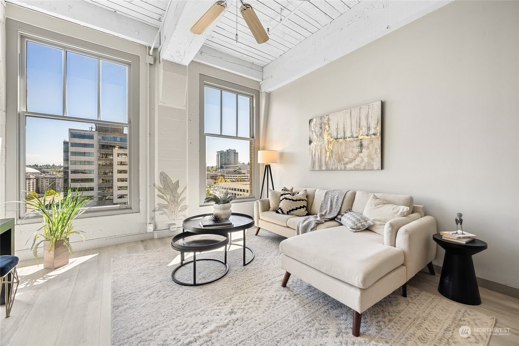 Beautiful historic Cliff Street Loft condo with unmatched views of Mt. Rainier, Tacoma dome, & Sound. Walking in you'll notice the exposed wood beams, 12 foot ceilings, and large windows. Relax in your living space or cook breakfast over looking the mountain. Updated throughout with SS appliances and open concept living. Washer/Dryer hookup & free laundry option on 5th floor. Extra storage unit located on same floor (4th). Enjoy endless views in your condo and up on the rooftop deck. Easy access to I-5 and downtown living, with shops & endless food options.