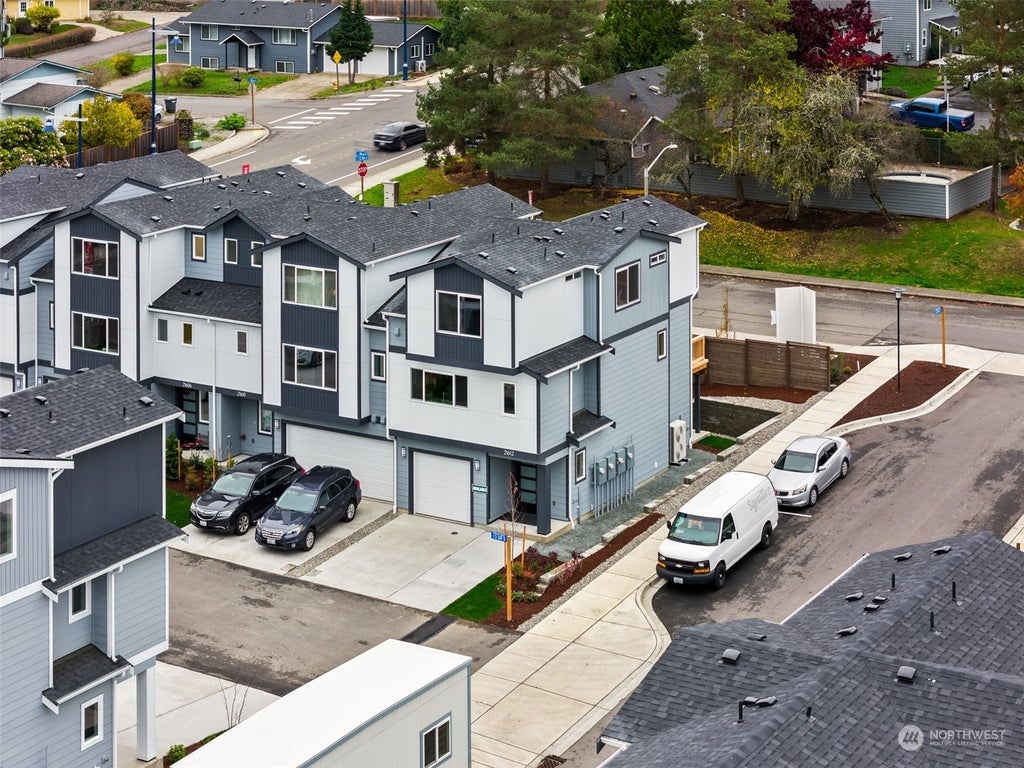 MOVE IN READY ~ MTT Homes presents The Towns at Whisler offering this west facing corner lot w/ 4 bedrooms, 3.25 bathrooms. This townhome layout provides main level open concept from kitchen w/ island to dining & living room featuring modern electric fireplace and easy access to deck. Unwind in the primary bedroom with attached 3/4 bath. Additional 2 bds & bath on upper level. Ground level offers 4th bedroom w/ walk in closet, attached full bath & slider to covered patio. Front & back yard landscaping, EV charging pre-wire, mini-split heating/cooling system too. All appliances including washer/dryer. 1 car garage + 2 car wide driveway. Within walking distance to marina & minutes to I-5 for easy access to Seattle or the Eastside.