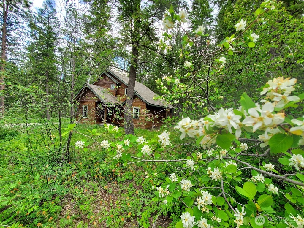 Sweet Winthrop location for this popular 'Nightly Rental' Cabin in the Woodlands, is the essence of 'Mountain Getaway'. Cabin is 1440 sf offering 2 bed/2.5 bath w/sleep Loft. Primary bedroom has ensuite bath. Views of Lucky Jim Bluff through treed forest setting, is the salve of green beauty and relaxing moments. Absorb warm glow of classic fireplace, surrounded w/natural rock & massive timber throughout great room. Large South facing windows, your lens to rugged mountain views. Hardwood floors honey Maple. Porcelain tiled countertop beautifully compliment cherry-wood accents & cabinetry. Appliances included. Backyard deck. Make this your fulltime home or continue the 'Bear Paw Cabin' rental. Wi-Fi.