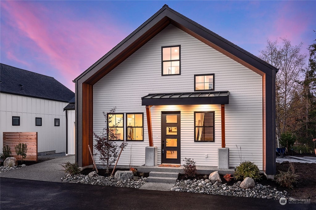 This brand new collection of NW contemporary cottage homes built by Strandberg Construction, is the perfect balance of spaces designed both for privacy and community. Poised against the lily pad covered pond with walking trails and gathering spaces throughout, invest in the neighborhood garden and future abundance of the orchard. Styled with modern touches, this cottage has a main level suite with elegant bath, 2 add bed and bath up, and an inviting farmhouse kitchen ready for celebration. Clear cedar detailing, solar panels, single car garage and drought resistant landscaping. Built net-zero these cottages enjoy a healthy respect for the incredible natural surroundings and will offer extremely low utility expenses and a soalr tax credit.