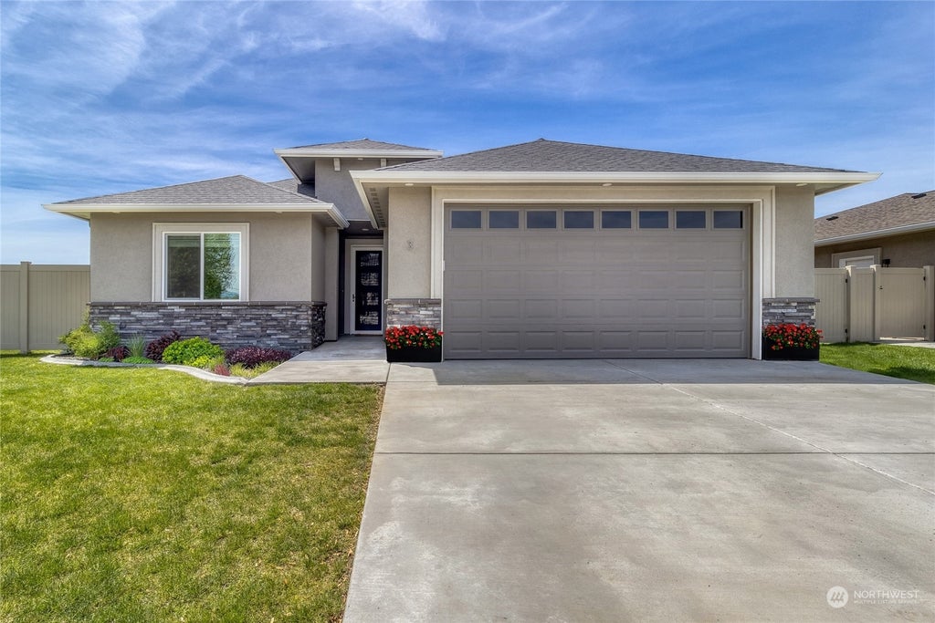Make a lasting impression! This home is packed with upscale finishes, the sleek kitchen featuring quartz countertops, roomy workspace, walk-in pantry, spacious dining area, an island that's perfect for casual dining and entertaining. Its highlights also include engineered hardwood flooring, a cozy gas fireplace, a stunning primary, ensuite with a zero-entry shower, expansive vanity, and a well-appointed walk-in closet. Outside, you have a fully fenced back and side yards with covered patio, raised beds, and multiple sitting areas for gathering around the fire pit or enjoying the sun. Notably, the home is fitted with solar panels for energy efficiency and triple-pane windows. Step-free access at all entrances and an EV charger in the garage.