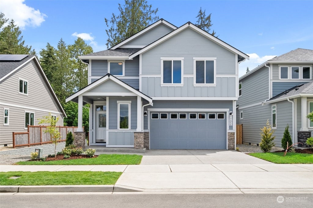 Discover affordable luxury in this stunning new home in Skyview Estates by Rob Rice Homes! Enjoy the versatility of the Dogwood plan featuring a main floor office and a spacious upper-level bonus room + 4 bedrooms! The kitchen boasts "Charcoal" Maple cabinetry, quartz counters with a full tile splash, a gas stove with a microwave/oven combo, and a convenient walk-in pantry. Hardwood flooring enhances the entry, kitchen, dining and living room, while contemporary design elements like white painted millwork and quartz counter tops throughout add a touch of elegance. Covered patio and and full privacy fencing and landscaped yard. Energy-efficient features: solar panels, heat pump, and electric hybrid hot water tank.