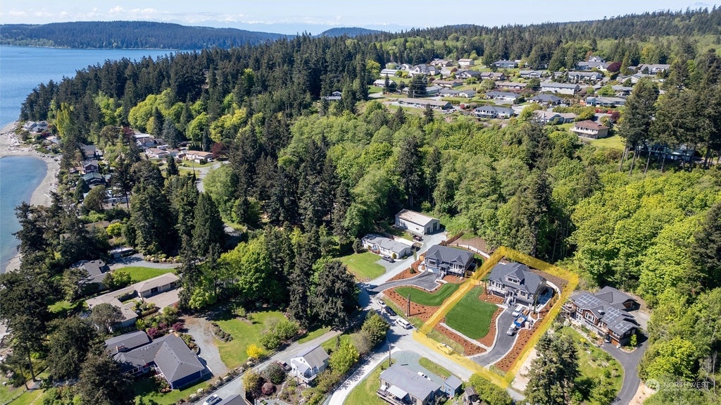 Spacious new 4,293 SF home with island and water views. 4 car tandem garage w/room for storage. Main level includes large primary suite with view & on suite. Also including a study/bedroom 5, laundry room, full bath, kitchen/dining/great room area with French doors leading to a view deck. Large covered rear deck with outdoor fireplace. Upstairs large family room, bedrooms 2 & 3, full bath, & plenty of storage. Downstairs includes large family room with wet bar/bedroom 4 & full bath. Designer selected finishes throughout. Fenced in yard is irrigated & fully landscaped.