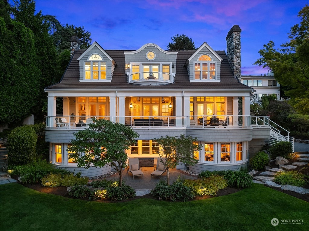 An exceptional estate with vast views and easy entertaining on the tip of Yarrow Point. Watch sunsets over Seattle from the residence and 82’ of waterfront. Ample places to recreate: Sport court, private beach, 150’ dock with boathouse, boat and jet ski lifts. And ample spaces to create: Craft room, flower cutting room, library, den. Entertain in style: Two kitchens, covered veranda with overhead heat lamps, lower-level rec room with kitchenette, wine cellar, home cinema. A private guest suite and separate dwelling quarters accommodate a larger household or an assortment of guests. Perched on a quiet lane and obscured from view by mature landscaping. Fragrant gardens, green lawns, blue sky and sparkling lakefront: the outlook here is sweet.