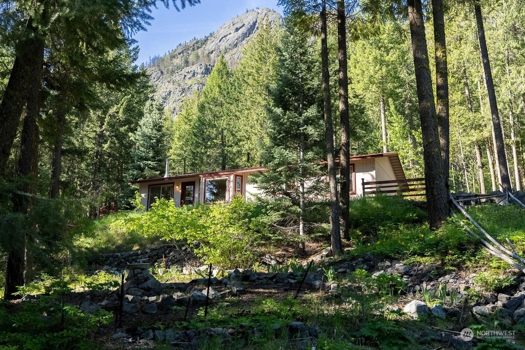 Dramatic homesite in the forest at the base of Lucky Jim Bluff, this nearly 5.5-acre property near Mazama is private and peaceful, adjacent to public land with end-of-road location. Minimal select tree removal will open up views from the homesite across the valley to Grizzly Mountain and Fawn Peak. Three bedroom Timberland home with pleasing forest views is well maintained and move-in ready! Two small bunk-houses and an outdoor shower-house to accommodate extra guests. Numerous outbuildings for storage. A great getaway or well-suited for full time living. Conveniently located between Winthrop and Mazama for access to the amenities of town and all the recreation opportunities the upper valley has to offer.