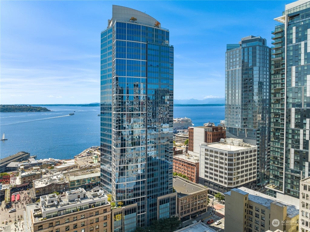Fifteen Twenty-One Second Avenue // Perched high above Pike Place Market, 1521 2nd Ave #1904 is the epitome of triple mint luxury. Beckoning with its generous two-bedroom plus den layout, the residence presents as-new exuding unmatched elegance and sophistication. Offering the "04-stack" floorplan, coveted for its clear west-facing views with no structural obstructions, every step within reveals attention to detail: exquisite white oak, satin-finish and flat-wasted edge granite, low-voltage and art lighting, 8' solid core doors, custom hand-blown glass pendants, and sleek white powder coated fixtures. Experience the pinnacle of modern condo living at Seattle's most well-established full-service luxury high-rise. 2-car parking. Storage.