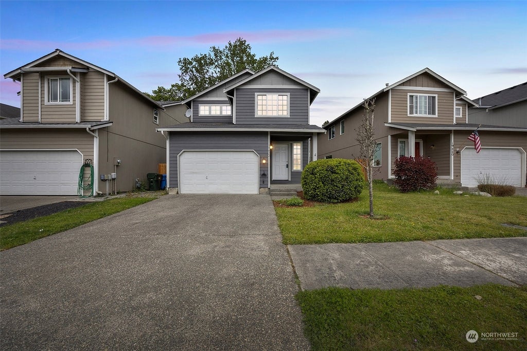 Discover your new home in a peaceful gated community: a 4-bedroom, 2.5-bathroom haven. Upon entering, you'll find a spacious dining room flowing effortlessly into an open concept floor plan. Spend cozy evenings by the gas fireplace in the inviting living room. The upstairs features four ample bedrooms. The expansive Primary Suite includes a 5-piece private bath, complete with a soothing soaking tub. Enjoy the partial views of the majestic mountains from upstairs. This home is conveniently located near shopping, dining, and JBLM.