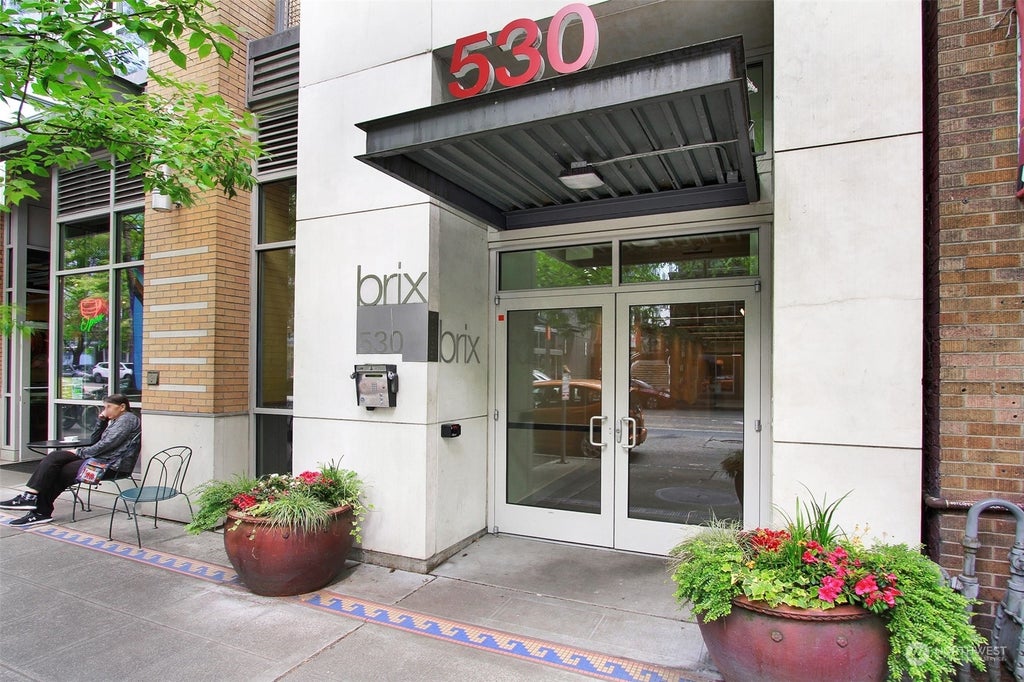 Experience urban living in this well-maintained 1-bedroom condo at 'The Brix' on Broadway. Located in a vibrant neighborhood, enjoy close proximity to shopping, dining, top coffee shops, & nightlife. This super walkable area is minutes from Seattle Central College, Volunteer Park, South Lake Union, & downtown. The Capitol Hill light rail & trolley are just blocks away. Home features all original appliances, AC Unit, hardwood floors, a new washer/dryer, & an east-facing courtyard view. Additional amenities include a designated garage parking spot, storage, & pet-friendly policies. Enjoy fireworks, Space Needle, & city views from the rooftop deck with BBQs.
