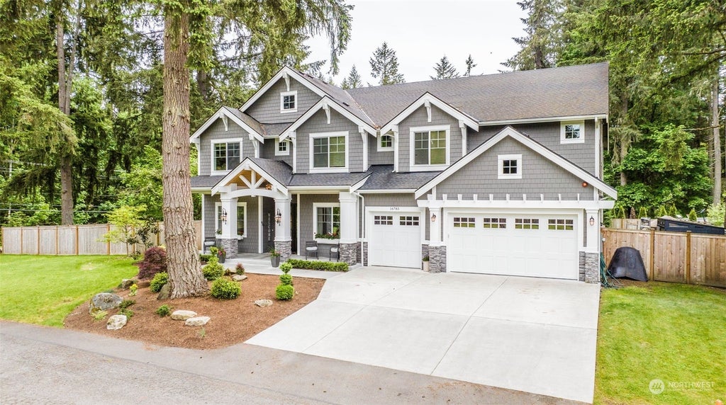 Available Again!! Ideal MIL living - Two primary suites, one on MAIN LEVEL, include spa-like baths, walk-in closets. Welcome to this custom-built 4,605 sqft luxury home on over 1/2 acre. The grand entry invites custom millwork, an Executive office & a family room with a 22-foot coffered ceiling. A gourmet kitchen w/ an oversized island, butlers pantry, a walk-in pantry. Addl features include Restoration Hardware lighting, custom iron railings, & plantation shutters. The upper level has 9' ceilings, 4 large bedrooms, a 2nd laundry room, & a spacious bonus room. The 3-car garage is EV wired w/ custom cabinets. Enjoy outdoor living with a covered patio, huge yard, RV parking & more. Just 2 miles from Woodinville & a short commute