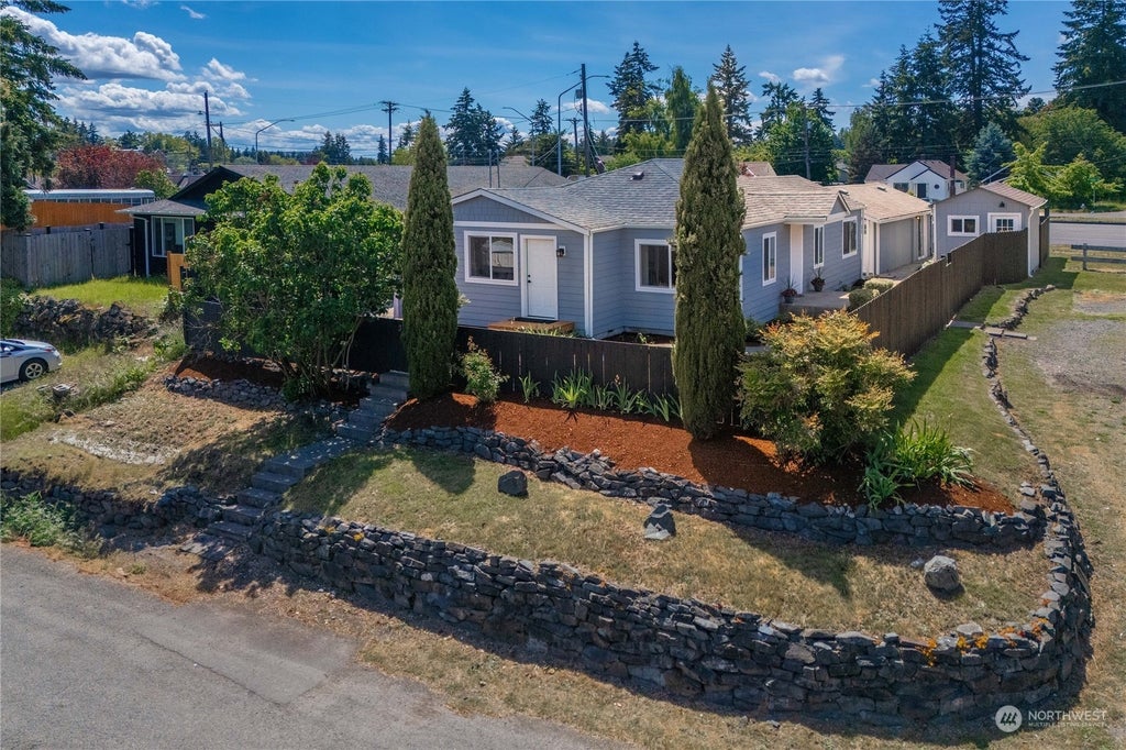 Discover this fully remodeled rambler featuring 3 beds & 2.5 baths + a detached studio, designed w/ an open concept & bathed in natural light. The primary bedroom boasts an attached bath w/ a luxurious walk-in shower. The modern kitchen is equipped w/ sleek SS appliances. Step outside to a beautifully landscaped, fully fenced yard offering privacy & tranquility. Enjoy the terraced rock wall & ample parking, perfect for your RV & boat. Additionally, this property includes a 448 sqft detached studio w/ rental possibility. It comes w/ a fully updated kitchen w/ SS appliances, bathroom, closet, & charming patio area. For those working from home, the property features a separate, heated office space measuring 12x12, creating an ideal workspace.