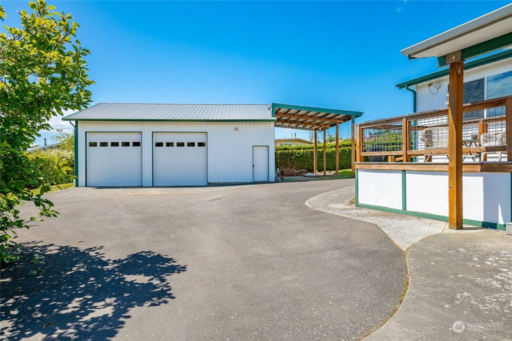 Opportunity in Birch Bay, hard to find combined double lots. Estate Sale on 1/3rd of an acre. Built in 1998. 1976 sq. ft. with an additional 1080 sq. ft. shop with mezzanine and additional carport. 3 bedrooms, 1.75 baths, open floor plan with no carpet in the main living areas. Vaulted ceilings, skylights, gas fireplaces & ceiling fans. Spacious kitchen with island seating, tons of cabinets. Separate dining room area all open to the great room. Primary with en-suite. All appliances stay including the washer and dryer. There are 3 separate RV storage areas with two having RV plugs. The site offers privacy at the end of a Cul-da-sac. Backyards have privacy hedges on one side and fencing. Extra outbuilding, quiet here. Sold as is. See it today
