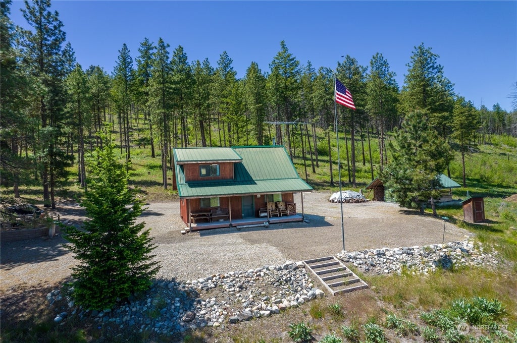 American Beauty! Mountain & wildflower meadow offer 'endless views' from this lovely 20 Ac property. Awesome 560 sf turnkey 1 bed/1 bath Cabin built 2003. Insulated. Wired for propane. Outbuildings include Shop/Garage w 864 sf. built 2018. Shower bunk house. Off-grid alternative systems. 1,700 gallon cistern gravity w/50 lb. pressure. Propane heat, lighting, & appliances for refrigerator, stove/oven, microwave. Spacious great room have vaulted high ceiling. Cabin living area interior is knotty pine wall to ceiling finish. Solid wood stairs to sleep loft. Woodstove rock hearth. Wood storage + secure container. Tool shed. Shooting range. Acreage entirely fenced. Gathering area w/ firepit. Outstanding value! All furnishings included.