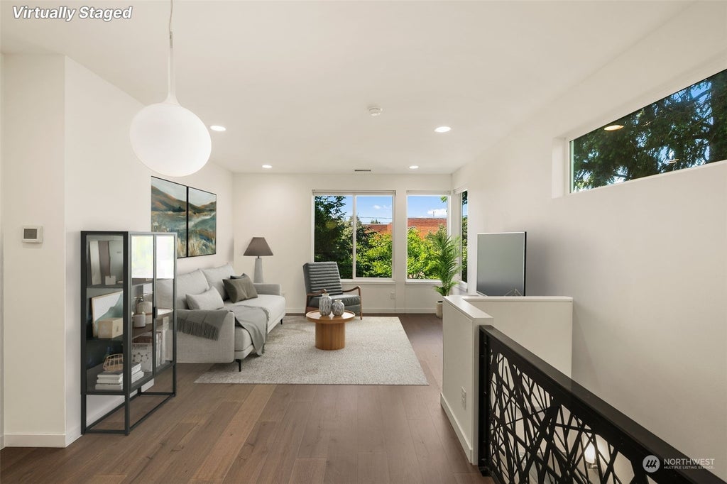 Enjoy the convenience of being close to all amenities while residing in a peaceful neighborhood. This property features an open kitchen floor plan with high-end appliances, filled with abundant natural light in each room. The master suite includes a large walk-in closet and a spacious bathroom. Relax and entertain on the spacious roof deck offering stunning Olympic Mountain views. Recently updated with new carpet and fresh paint.Assigned parking behind the unit. Pre-inspected! A must-see!